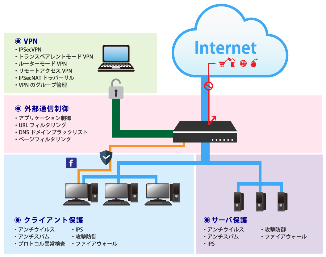 - Qさまざまなネットワーク脅威からオフィスを守りたい…
