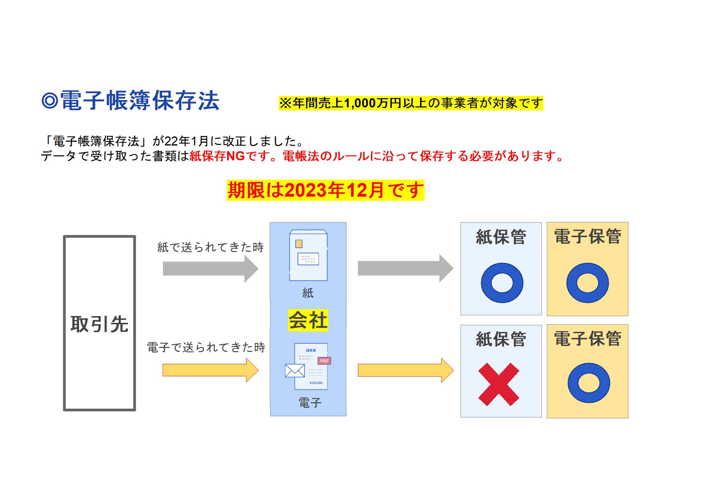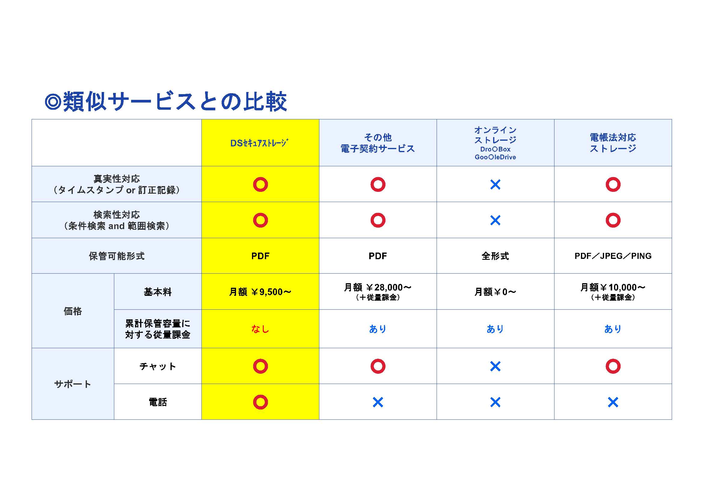 2023年12月が期限となる「電子帳簿保存法」に対応するサービス『DSセキュアストレージ』を急ピッチで提供準備中です。 出来る限り無駄を省き、お客様が簡単に且つ低価格で御利用できるよう準備しております。 詳しくは営業担当へお問い合わせください。