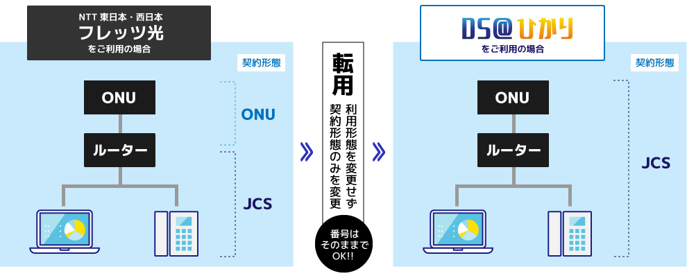 NTT東西のフレッツ光、データ総研インターネットサービスを別々にご契約いただいていましたが、 「DS@ひかり」を導入いただくことで、ご契約をデータ総研にまとめることができます。 それにより請求もデータ総研からとなりますので、手間のかかる支払い業務が軽減されます。